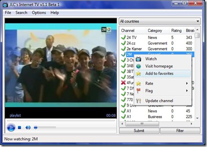 JLC's Internet TV is a FREE program for watching and browsing thousands of TV channels freely available on the internet. It's probably the biggest and most up to date database of channels ever, and users are able to submit, rate and flag channels. And with the new flagging and rating system you'll easily see which channels works and which is worth to watch and our goal is to bring you the best online TV experience out there!